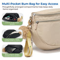 A: This bag is designed for maximum organization. It features multiple thoughtfully placed pockets—including secure zippered main compartments and quick-access exterior slip pockets. Your phone, keys, wallet, and lip balm all get their own dedicated space, so you never have to dig around again.